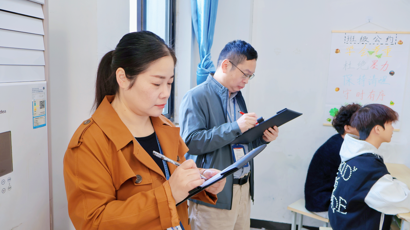 此次活动的评审团由校领导、年级主任、教师代表组成,评比内容涵盖教室卫生、物品布置,教室文化氛围布置,班级班歌、口号展示,讲解等方面。评委们在评比过程中始终保持高度专注,从多维度细致考察班级文化建设的成果,力求为班级的努力提供公正评价。