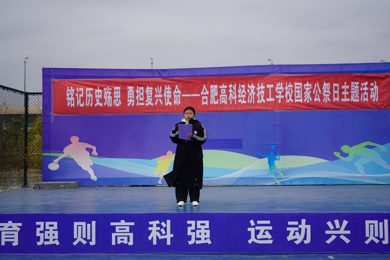 2025年12月13日,是我国第十二个南京大屠杀死难者国家公祭日。为深切缅怀遇难同胞,厚植家国情怀,激励广大师生以史为鉴、奋发图强,合肥高科经济技工学校在操场隆重举行“铭记历史殇思 勇担复兴使命”国家公祭日主题活动。全体师生怀着肃穆的心情参加了此次活动。