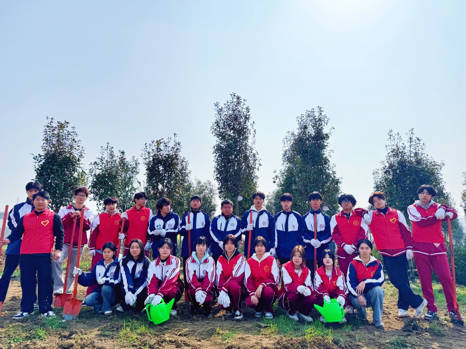 活动现场,我校学子分工协作、默契配合。大家挥锹铲土、扶苗扶正、填土压实、提水浇灌,在专业人员指导下认真完成每一道工序。同学们热情高涨、干劲十足,认真种下每一株树苗,让新绿在土地上扎根生长。